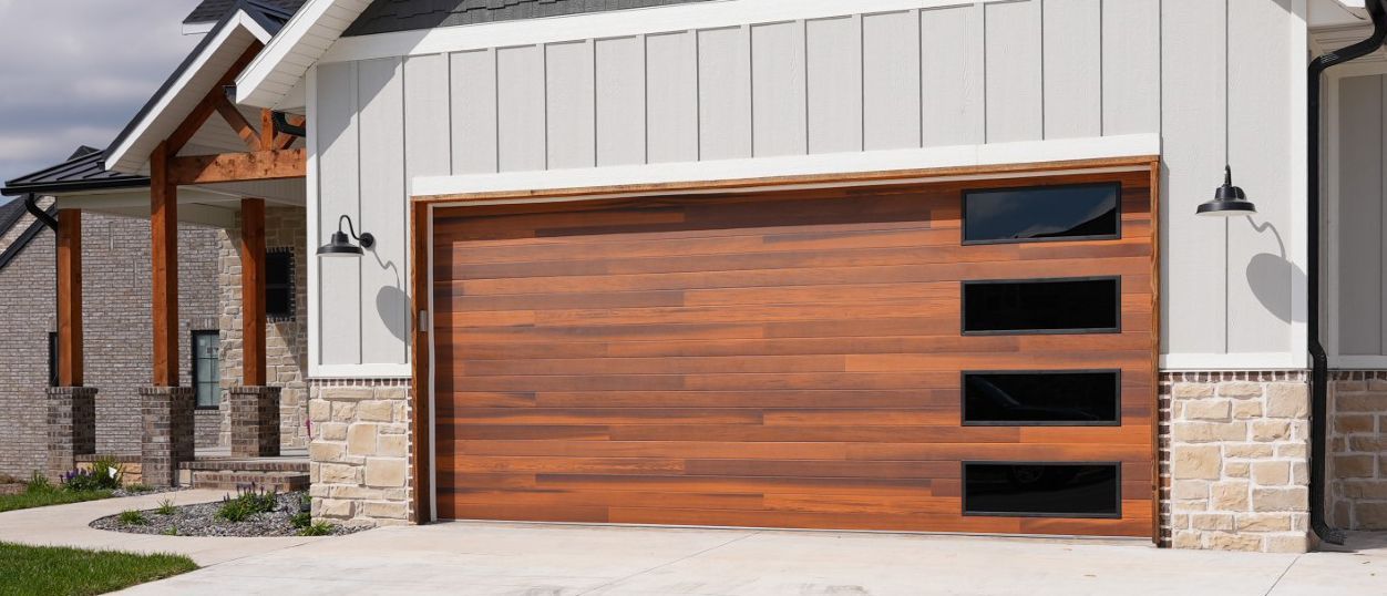 If you like the look of wooden garage doors but don't want the maintenance, a wood-look garage door could be the perfect match for your home.
